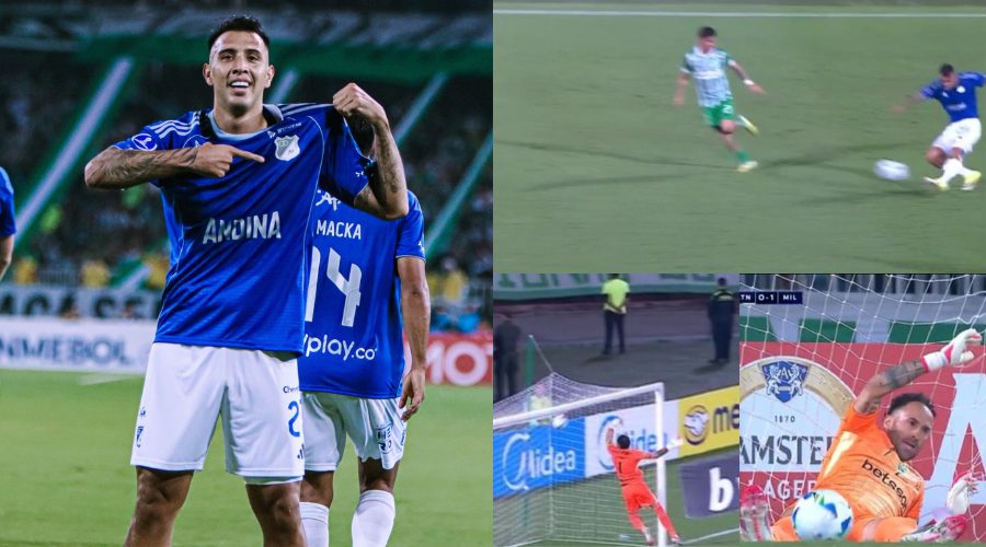 El delantero argentino Rodrigo Contreras recortó hacia adentro para desairar a un rival, levantó la cabeza, vio adelantado a David Ospina y sacó un extraordinario zurdazo desde atrás de mitad de la cancha para el 1-0 de Millonarios sobre Atlético Nacional en el Atanasio Girardot por la Fase I de la Copa Sudamericana.